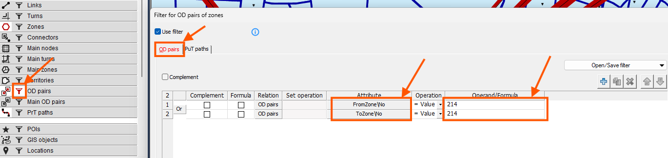 Обираємо піктограму фільтру для OD pairs.